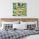 Monet Japanese Bridge with Water Lilies canvas wrap. Oil painting on canvas from 1899. Monet painted the Japanese style bridge above his water lily pond at Giverny multiple times throughout his long career. This is one of the most famous of Monet’s Japanese Bridge paintings. The work features the bridge at mid morning with the sun streaming down upon the light green lily pads and pink lily flowers blooming in the pond below. The bridge itself is soft green and blue. A pretty gift for fans of Claude Monet, Impressionism, and French Landscape paintings.