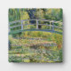 Monet Japanese Bridge with Water Lilies plaque. Oil painting on canvas from 1899. Monet painted the Japanese style bridge above his water lily pond at Giverny multiple times throughout his long career. This is one of the most famous of Monet’s Japanese Bridge paintings. The work features the bridge at mid morning with the sun streaming down upon the light green lily pads and pink lily flowers blooming in the pond below. The bridge itself is soft green and blue. A pretty gift for fans of Claude Monet, Impressionism, and French Landscape paintings.