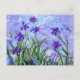 Postcard featuring Claude Monet’s oil paining Lilac Irises (1914-1917). Beautiful purple flowers in a sea of green. Serene nature landscape. A great Monet gift for fans of impressionism and French art.