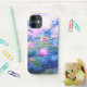 A Monet iPhone 12 Mini Case featuring beautiful pink water lilies floating in a calm blue pond with lily pads. A great Monet gift for fans of impressionism and French art. Serene nature impressionism with lovely flowers and scenic pond landscape.