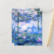 A Monet pink water lilies 4.5"x5.6" paper sheet featuring beautiful pink water lilies floating in a calm blue pond with lily pads. A great Monet gift for fans of impressionism and French art. Serene nature impressionism with lovely flowers and scenic pond landscape.