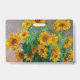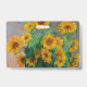 Badge featuring Claude Monet’s oil painting Bouquet of Sunflowers (1881). Beautiful sunflowers in a blue vase atop a red table. A great gift for fans of impressionism and French art.