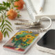 Keychain featuring Claude Monet’s oil painting Bouquet of Sunflowers (1881). Beautiful sunflowers in a blue vase atop a red table. A great gift for fans of impressionism and French art.