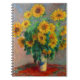 Notebook featuring Claude Monet’s oil painting Bouquet of Sunflowers (1881). Beautiful sunflowers in a blue vase atop a red table. A great gift for fans of impressionism and French art.