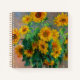 Notebook featuring Claude Monet’s oil painting Bouquet of Sunflowers (1881). Beautiful sunflowers in a blue vase atop a red table. A great gift for fans of impressionism and French art.