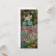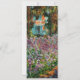 A Monet flower greeting card featuring beautiful pink and purple irises in a garden shimmering underneath tall trees. A great Monet gift for fans of impressionism and French art. Peaceful nature impressionism with lovely flowers and scenic landscape.