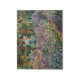 A Monet flower notepad featuring beautiful pink and purple irises in a garden shimmering underneath tall trees. A great Monet gift for fans of impressionism and French art. Peaceful nature impressionism with lovely flowers and scenic landscape.
