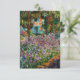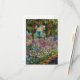 A Monet flower RSVP card featuring beautiful pink and purple irises in a garden shimmering underneath tall trees. A great Monet gift for fans of impressionism and French art. Peaceful nature impressionism with lovely flowers and scenic landscape.