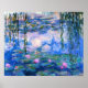 Monet Water Lilies poster. Oil painting on canvas from 1916. Monet painted his famous water lily pond obsessively during the final years of his career, drawing inspiration from the light of the sun and its shifting effect on the water and the aquatic flowers and foliage. This painting features a vibrant use of pinks, blues and purples and makes a great gift for fans of Claude Monet, impressionism, flower paintings, and French art.