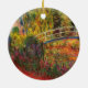 Ornament featuring Claude Monet’s oil painting of a Japanese bridge and beautiful flowers. Water lily pond and water irises bathed in pink light. Serene nature impressionism with lovely flowers and scenic pond landscape. A great Monet gift for fans of impressionism and French art.