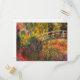 Postcard featuring Claude Monet’s oil painting of a Japanese bridge and beautiful flowers. Water lily pond and water irises bathed in pink light. Serene nature impressionism with lovely flowers and scenic pond landscape. A great Monet gift for fans of impressionism and French art.