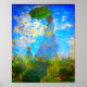 A family portrait poster featuring Claude Monet’s wife, Camille, holding a parasol, and their son, Jean, taking a walk in a vibrant green field being blown by the wind on a summer’s day. A great Monet gift for fans of impressionism and French art.
