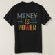 A bold and eye-catching t-shirt design featuring the phrase "Money is Power." in vibrant, multi-coloured graffiti style. The text is surrounded by splashes and drips of paint, creating a dynamic and energetic visual. The design is perfect for those who want to make a statement and embrace the pursuit of wealth and success.