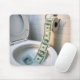 A roll of toilet paper styled as dollar bills sits on a holder next to a flushing toilet, highlighting a stark contrast between luxury and wastefulness