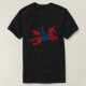I give wanted to give this a 4 instead of a 5 because these Basic DARK T0shirts run unexpectedly SLIM or Narrow. Which is great if you do not have a potbelly, but I have a paunch. It isn't the shirt's fault that I've got a beer belly. The design and shirt itself is a quality cotton shirt. The color is more of a deep purple, but still a very pretty color. The Basic DARK T-shirts run a bit SLIMMER than the Basic Ts. The neck is a fraction narrower (or seems to be narrower) also. I'm a paunchy middle-aged woman and my neck is 12 inches (31cm) thick and the neckline fell about the same as in the photo of the man, and I had the desire to tug it a bit. So if you're a thick necked man or like loose shirts, be aware these are slimmer shirts. Once I get rid of my lockdown paunch it'll look great. The shirt washed well in cold water with no apparent bleeding. We don't have a dryer, so it hung dry. Did not shrink. Love the colors and the design. The design looks smaller on my shirt than it does on the model on-line. But still, it looks good on the shirt. The printing looks as it does on the model, just the size seems fractionally smaller. Washed garment in cold water, hung dry and design appeared unaffected.