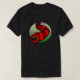 I give wanted to give this a 4 instead of a 5 because these Basic DARK T0shirts run unexpectedly SLIM or Narrow. Which is great if you do not have a potbelly, but I have a paunch. It isn't the shirt's fault that I've got a beer belly. The design and shirt itself is a quality cotton shirt. The color is more of a deep purple, but still a very pretty color. The Basic DARK T-shirts run a bit SLIMMER than the Basic Ts. The neck is a fraction narrower (or seems to be narrower) also. I'm a paunchy middle-aged woman and my neck is 12 inches (31cm) thick and the neckline fell about the same as in the photo of the man, and I had the desire to tug it a bit. So if you're a thick necked man or like loose shirts, be aware these are slimmer shirts. Once I get rid of my lockdown paunch it'll look great. The shirt washed well in cold water with no apparent bleeding. We don't have a dryer, so it hung dry. Did not shrink. Love the colors and the design. The design looks smaller on my shirt than it does on the model on-line. But still, it looks good on the shirt. The printing looks as it does on the model, just the size seems fractionally smaller. Washed garment in cold water, hung dry and design appeared unaffected.