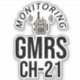I monitor GMRS channnel 21 sticker for offroad two way radio users.