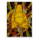 Chubby Buddhist monk sits in meditation as swirls of multicolored energy beams surround him in a glowing mindfulness! Monk in meditation art perfect for creating a relaxing yet energising feeling!
