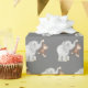 Cute grey elephant with a monkey hanging on its trunk with a dark grey background.