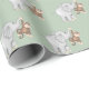 Cute grey elephant with a monkey hanging on its trunk with sage green background.