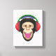 Monkey at Music with Headphone Canvas Print