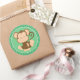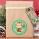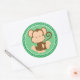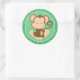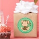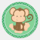 This design features a green background with a repeating pattern of jungle leaves. A cute baby clipart brown and tan monkey sits in the centre of the sticker.