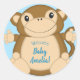 Monkey Baby Shower Blue Classic Round Sticker