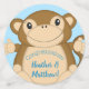 Adorable monkey baby shower design is great for a safari, zoo or jungle theme baby shower! The cartoon monkey on a blue background makes a great look for celebrating a baby boy on the way!