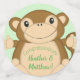Throw a jungle theme party with this cute cartoon monkey baby shower design! Great for a zoo or animal theme baby shower too!