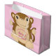 Adorable monkey cartoon baby shower design is great for a jungle theme! Perfect in pink for a new baby girl on the way!
