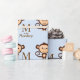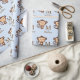 Adorable brown and baby blue monkey "M is for Monkey" monkey baby shower gift wrap. This sweet brown and blue monkey baby shower gift wrap can be customised with your text in the font style and colour of your choice.