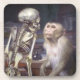 Painting of a Capuchin monkey leaning on a desk, staring into the face of a skeleton. Wonderful oil on canvas by Prague-born Austrian painter, Gabriel von Max (1840-1915).