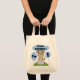 The printing came out very well, better than I had anticipated. The natural color fabric is sturdy with strong seams and comfortable handles. This tote fits easily over my shoulder. As it is filled, the bottom flattens out--very cool! I would buy this product again. This grocery tote holds a lot of groceries! The image quality was very good. The colors were a little darker than I had expected. The darkness may have been due to printing on a natural color fabric rather than on white. The cat design is attractively centered on the tote. The spirit of the design is very lively, just as it appears on the Zazzle website.