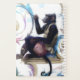 Whimsical painting of a monkey blowing bubbles, surrounded by pastel swirls of blue, pink, yellow and purple.