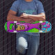 Our "Monkey Business" skateboard shows a purple monkey hanging from its tail. This skateboard is customisable and comes in a number of sizes. These are the best quality hard-rock maple decks! An unrivaled patent-pending printing process make this the best skateboard available in the world.