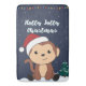 The monkey for Christmas with fairy lights. Funny animals with gifts and snow for the holidays. Also funny for christmas in July. Monkeys are cute animals and perfect for Christmas.