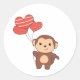 Monkey Cute Animals With Heart Balloons valentine Classic Round Sticker