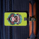 A monkey portrait illustration on a vivid green background. Great for frequent travelers who have hard time to identify their luggage(s).