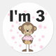 Monkey I'm 3 Birthday Tshirts and Gifts Classic Round Sticker