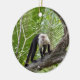 Photo of a capuchin monkey (also called a white-faced monkey) staring directly into the camera from a big tree branch in the jungles of Costa Rica.
