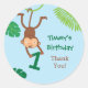 This cute and colourful birthday favour sticker is ideal to celebrate your son’s 1st birthday. It features a monkey character hanging from a branch and holding the birthday number. Leaves decorate the border. This playful design is perfect for an active child that likes to have fun.
