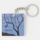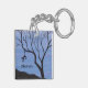 A watercolor painting of a monkey silhouetted in the twilight adorns this customisable keychain!