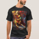 I give wanted to give this a 4 instead of a 5 because these Basic DARK T0shirts run unexpectedly SLIM or Narrow. Which is great if you do not have a potbelly, but I have a paunch. It isn't the shirt's fault that I've got a beer belly. The design and shirt itself is a quality cotton shirt. The color is more of a deep purple, but still a very pretty color. The Basic DARK T-shirts run a bit SLIMMER than the Basic Ts. The neck is a fraction narrower (or seems to be narrower) also. I'm a paunchy middle-aged woman and my neck is 12 inches (31cm) thick and the neckline fell about the same as in the photo of the man, and I had the desire to tug it a bit. So if you're a thick necked man or like loose shirts, be aware these are slimmer shirts. Once I get rid of my lockdown paunch it'll look great. The shirt washed well in cold water with no apparent bleeding. We don't have a dryer, so it hung dry. Did not shrink. Love the colors and the design. The design looks smaller on my shirt than it does on the model on-line. But still, it looks good on the shirt. The printing looks as it does on the model, just the size seems fractionally smaller. Washed garment in cold water, hung dry and design appeared unaffected.