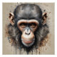 A monkey with detailed watercolor with expressive eyes is portrayed against a soft, blurred background. The natural colours enhance the lifelike appearance.