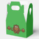 Party favour box shown in green in a gable style with a cute cartoon monkey. Customise this item and add your own text or buy as is and add some pretty ribbon.