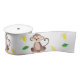 Cute illustration of a monkey from the jungle with two peeled bananas. Adding in a hint of jungle with tropical leaves to this pattern.