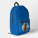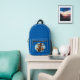 Backpack with a brown monkey climbing a tree, and another one sitting in the tree, illustration by MaxiHarmony / Radka Kavalcova