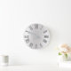 Monochromatic Glitter Grey Silver Roman Numbers Round Clock