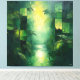 Immerse yourself in the lush tranquillity of this monochromatic green abstract jungle landscape. Featuring bold geometric forms and textured brushstrokes, this artwork captures the serene beauty of tropical palms and reflective water bathed in soft green light. The harmonious tones evoke a sense of calm and sophistication, making it an ideal centerpiece for modern, minimalist, or nature-inspired interiors. Perfect for art lovers seeking a unique blend of abstraction and natural elegance to transform their living or workspace.