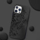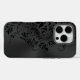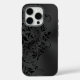 This elegant monochromatic phone case design features a black metallic background with a black floral swirl, a perfect gift for any girl.